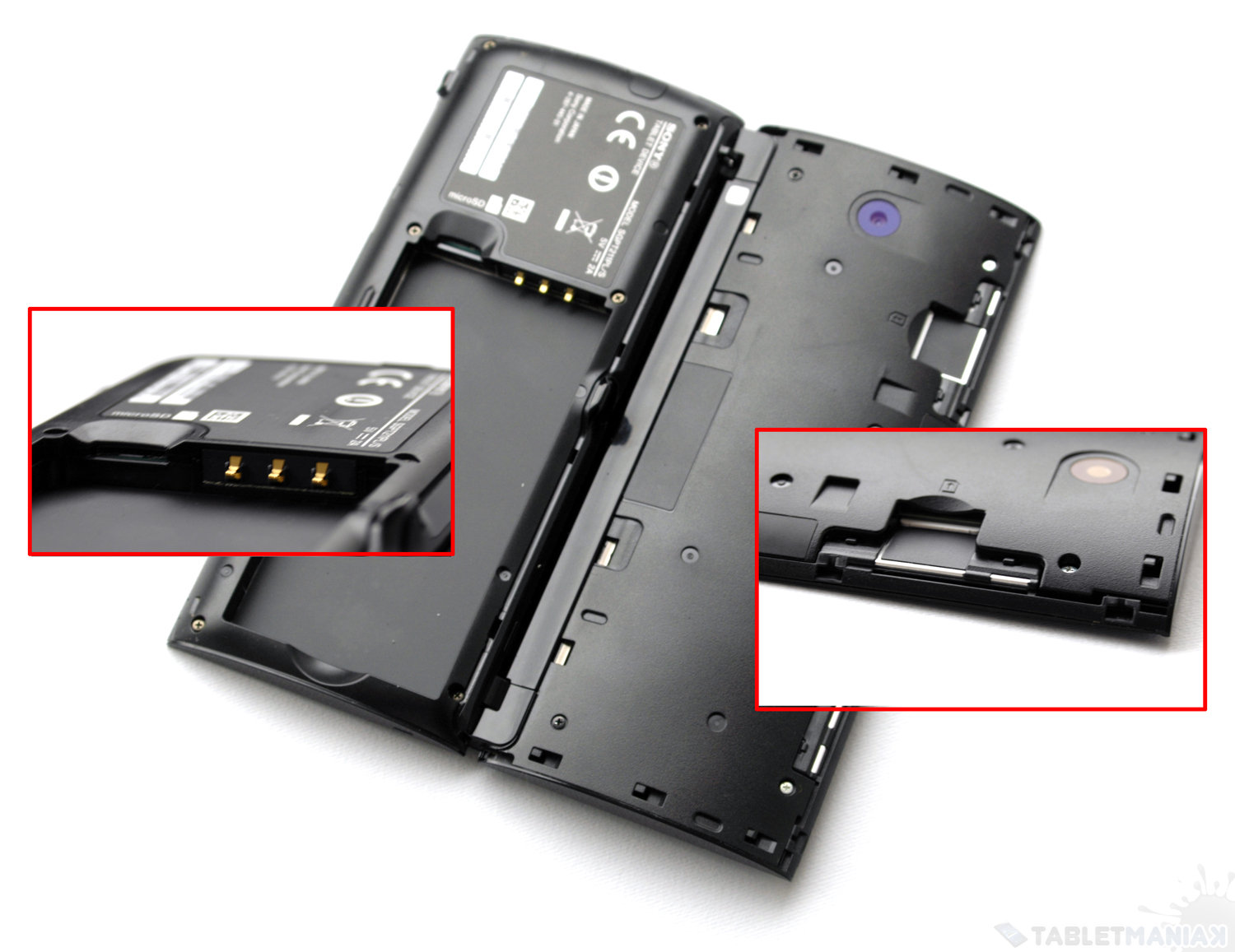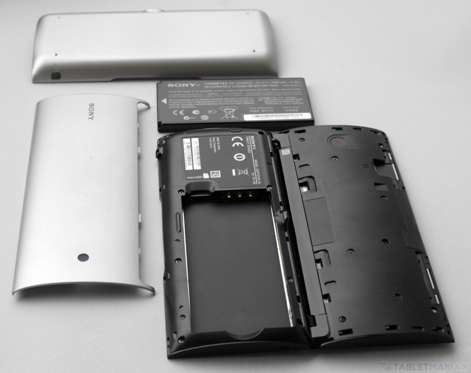 W przeciwieństwie do wielu innych tabletów, w wypadku Sony P, dwuczęściową obudowę można zdjąć, odsłaniając komorę akumulatora oraz gniazda kart SIM i microSD. Niestety, system opracowany przez japońskich konstruktorów nie jest specjalnie wygodny – górna płyta jest stanowczo zbyt luźno zamontowana i łatwo ją w niektórych sytuacjach przypadkowo ściągnąć.