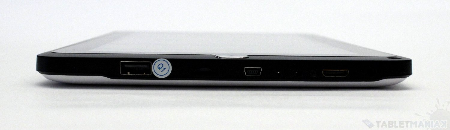 Projektanci umieścili wszystkie porty komunikacyjne na jednej, bocznej ściance tabletu. Z uwagi na gabaryty urządzenia, nie musimy się obawiać ubogiego zestawu gniazd – jest wręcz przeciwnie. Na pokładzie bowiem (poza nieodłącznym mini-USB oraz slotem na karty microSD) znajdziemy pełnowymiarowy port USB pełniący rolę hosta, port miniHDMI oraz jack 3,5 mm dla sprzętu audio. Jakby tego było mało, producent dorzuca do zestawu przejściówkę na USB 2.0.