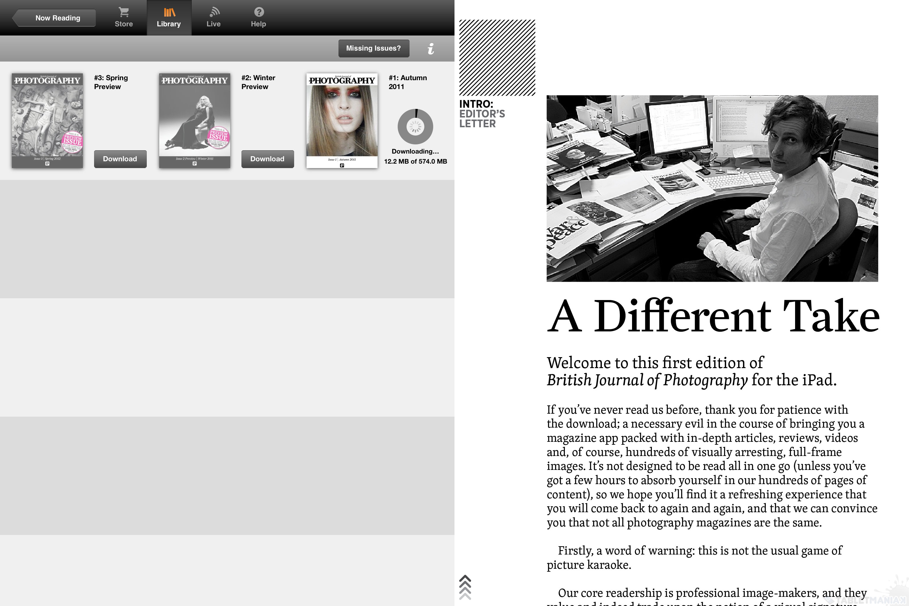 Jedną z najczęściej odwiedzanych przeze mnie aplikacji był Kiosk. Tutaj dla odmiany napisać można dużo pozytywnych rzeczy. Służący do czytania i subskrybowania elektronicznych publikacji program w praktyce sprawował się bez zarzutu. Z jego pomocą łatwo i szybko można znaleźć, kupić i przejrzeć publikacje z niemal każdego segmentu rynku. Na uwagę zasługuje również fakt, iż wydania e-magazynów na sprzęt Apple różnią się od tych na Androida (jeżeli są dostępne na obie platformy, bo często zdarza się, że wydawcy decydują się tylko na wpieranie iOS) i to nie na korzyść zielonego robota.