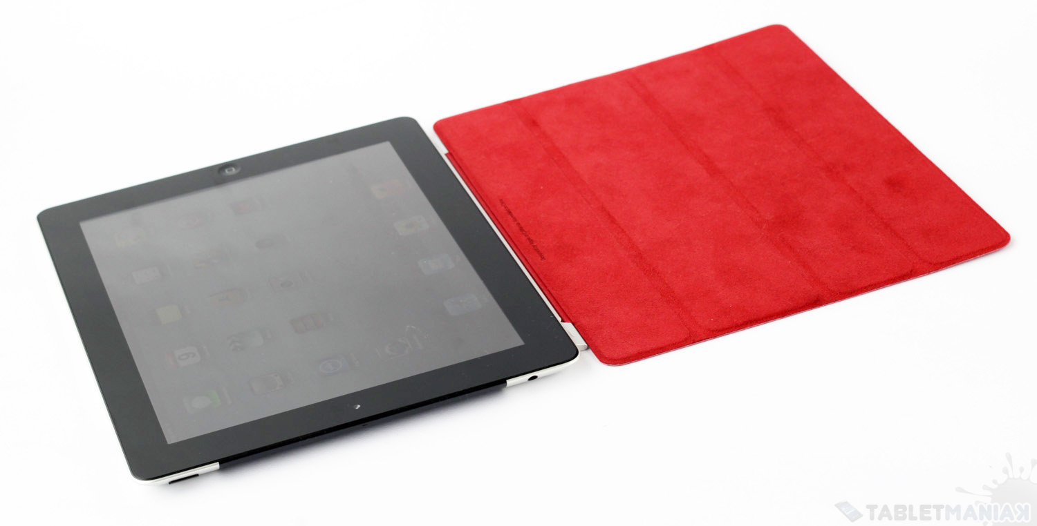 Tablet trzyma się w ręku bardzo wygodnie zarówno w pozycji pionowej, jak i poziomej. Ergonomię i komfort użytkowania można natomiast jeszcze poprawić, używając do tego celu Smart Cover. Choć jej konstrukcja jest prosta jak przysłowiowa budowa cepa – magnetyczny zawias „przykleja” się do jednego z boków iPada i nie pozwala na zsunięcie się osłony, która od wewnętrznej strony pokryta jest miękkim materiałem – to poza ochronnymi właściwościami pełni również rolę stojaka, o który możemy oprzeć urządzenie w czasie pracy lub prezentacji.