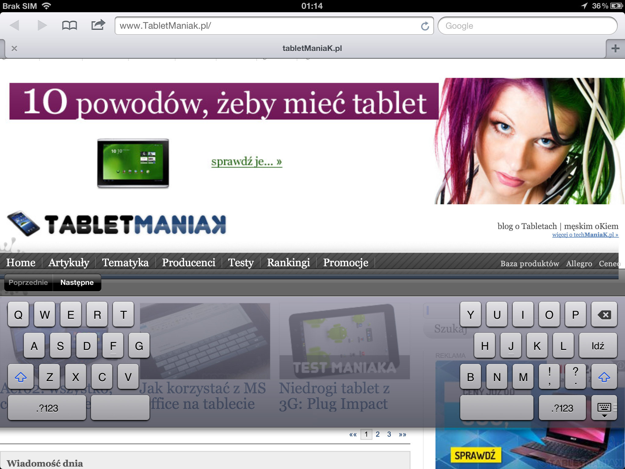 Jako zdeklarowany hejter firmy apple (dodam tylko, że firmy w dzisiejszej postaci, mentalnie diametralnie różniącej się od legendarnego producenta mac'ów z lat 80-tych i 90-tych.) i całkowicie odporny na "charm" świecącego ogryzka, jestem zdania, że iPad został stworzony dla wybrańców, zdefiniowanych przez apple'a w sposób tyleż konkretny co niezrozumiały.