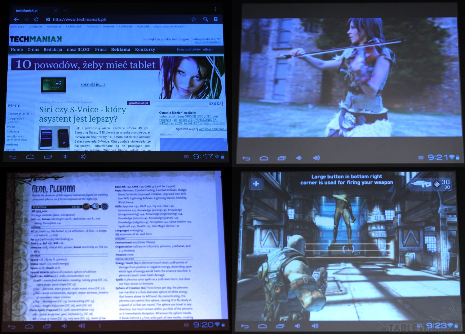 Istnieje jednak kilka znaczących różnic, których cyfry nie pokażą, wpływających bezpośrednio na funkcjonalność. Bez większego problemu pobraliśmy z sieci kilka ciekawych tytułów, takich jak Shadowgun, Dungeon Defender oraz Blood and Glory. Sprzęt uruchomił wszystkie z wymienionych, co stanowi z pewnością miłe zaskoczenie dla osób zafascynowanych możliwościami Tegry, a dysponujących skromnym budżetem.