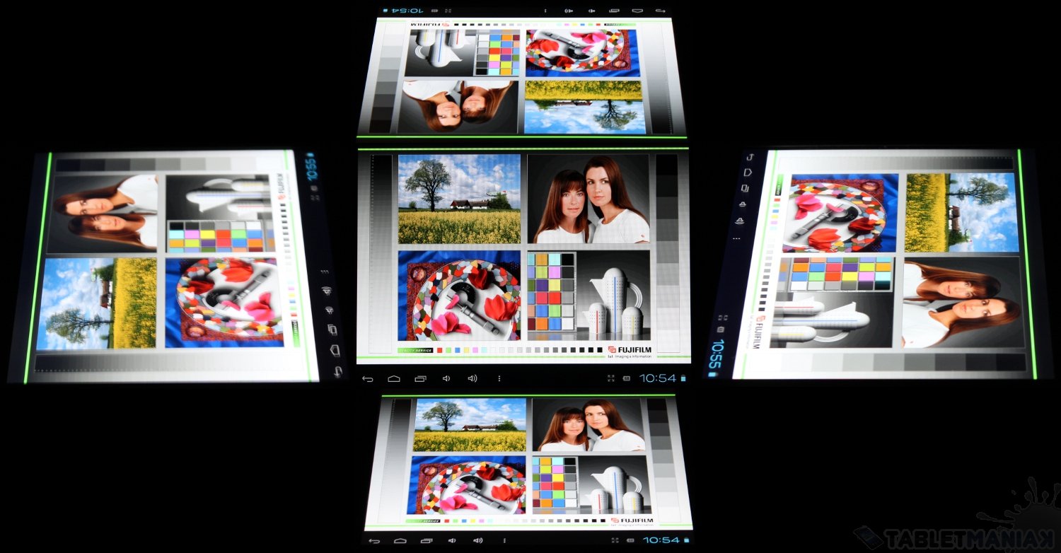 Tablet został wyposażony w 9,7-calowy ekran zaprojektowany w technologii IPS. Czym się różni od standardowych wyświetlaczy LCD? Nie zagłębiając się w techniczny żargon – użytkownik przede wszystkim zauważy lepsze kąty widzenia sięgające nawet 60 stopni bez zmiany kontrastu i nasycenia barw. To oznacza możliwość oglądania klipów z YT przez więcej niż dwie osoby. Ponadto, wyświetlacz odznacza się lepszym podświetleniem, co rekompensuje błyszczącą matrycę i redukuje efekt lustra w ostrym świetle. Chociaż rozdzielczość 1024×768 pikseli nie jest niczym nadzwyczajnym przy tej przekątnej, to jednak obraz wydaje się być przejrzystszy, wyraźniejszy, a wyświetlane barwy żywsze.
