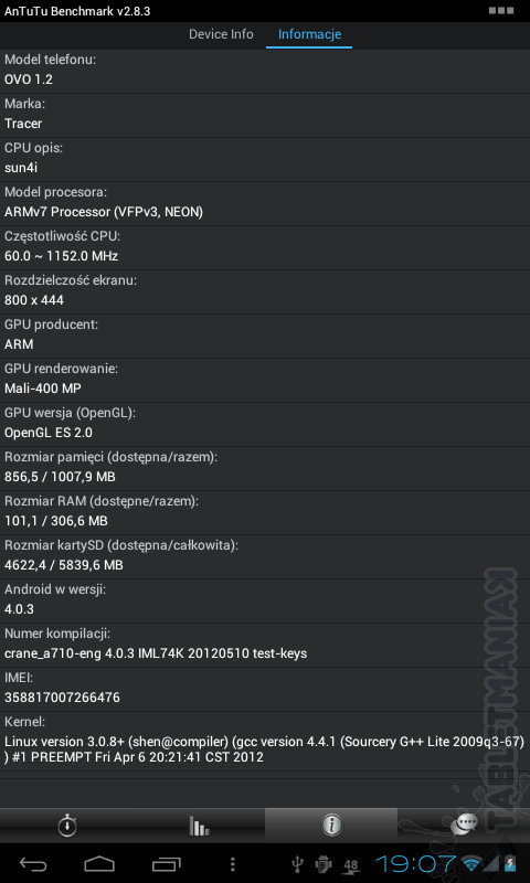 Procesor w nim (CPU) jest taktowany dokładnie 1152MHz (na najnowszej wersji oprogramowania, w starszych wersjach tylko 1000MHz)