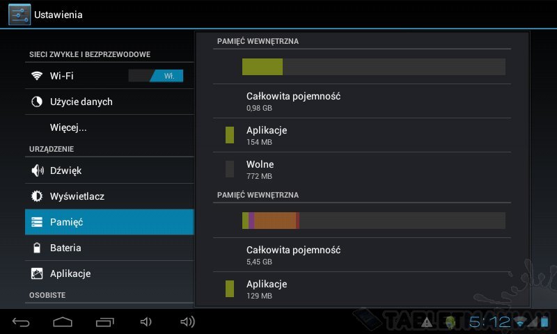Moc obliczeniową zapewnia zasłużony już jednordzeniowy procesor Allwiner A10 zbudowany na architekturze Cortex-A8 z układem graficznym Mali-400 o taktowaniu 1 GHz, który wspomagany jest przez 512 MB pamięci operacyjnej RAM DDR3. Dane możemy przechowywać w pamięci urządzenia o wielkości 8 GB z czego dostępne jest 5,45 GB oraz 0.98 GB na aplikacje. Kontrolę nad wszystkim sprawuje natomiast Android 4.0.3 Ice Cream Sandwich z dostępem do tysięcy aplikacji, dzięki Google Play. Generalnie taka konfiguracja pozwala na sprawną pracę systemu bez większych zacięć oraz przestojów, jednak należy pamiętać aby nie przesadzić z ilością uruchomionych aplikacji w tle. jTab W710 to raczej uniwersalny sprzęt, który bez problemu poradził sobie z najnowszym tytułem jaki obecnie dostępny jest w Google Play – Dead Trigger, niemniej jednak należy pamiętać, że nie został on do tego stworzony. Wymagający użytkownicy powinni szukać dla siebie sprzętu o dużo lepszej specyfikacji technicznej.