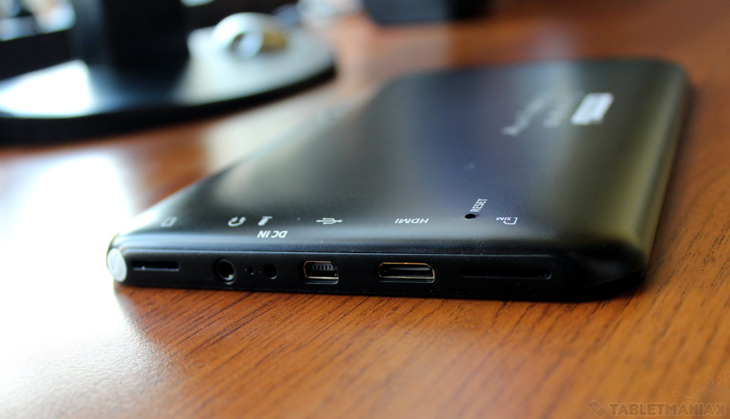 Projektanci skupili wszystkie porty komunikacyjne na jednej, bocznej ściance tabletu. Na pierwszy rzut oka jest to standardowy zestaw. Port micro-USB do łączności z komputerem lub podłączenia przejściówki na pełnowymiarowy USB; slot kart microSD; gniazdo mini-HDMI; złącze jack 3,5mm i oczywiście gniazdo zasilania. Tablet został jednak zaprojektowany jako urządzenie mobilne. Dlatego na pokład trafił również modem 3G, który możemy wykorzystać zarówno do przeglądania sieci, jak i do tradycyjnego telefonowania i sms-owania. Karty SIM są wciskane do sprężynowego gniazda na boku urządzenia, ale żeby urządzenie je wykryło, należy zrestartować system.