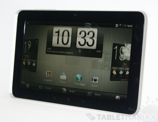 Warto także wspomnieć co nieco, na temat samego wyposażenia tabletu i systemu operacyjnego. Nie mam pojęcia, jak firma HTC tego dokonała, ale jednordzeniowy procesor ARM Qualcomm Snapdragon 1,5 GHz działa po prostu wyśmienicie. Android 2.3 Gingerbread z autorską nakładką HTC Sense pracuje niezwykle płynnie i jak na razie nie zauważyłem żadnego, nawet najdrobniejszego spadku wydajności. Swoją drogą nakładka HTC Sence prezentuje się równie znakomicie i po kilku godzinach od pierwszego włączenia urządzenia jeszcze w całości go nie rozpracowałem. Tablet jest napakowany całą masą oprogramowania – część z nich nieprzydatna, ale większość z pewnością ma swoje sensowne zastosowanie.