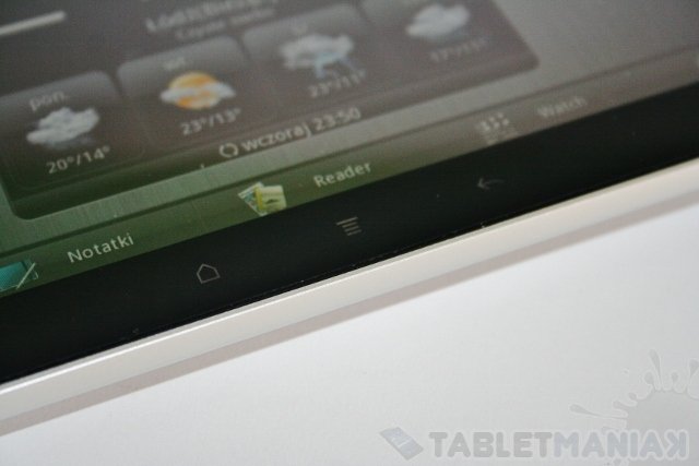 Sprzęt, dzięki stosunkowo niewielkim rozmiarom oraz niskiej wadze – wynoszącej niespełna 420 gramów – bardzo pewnie leży w dłoni. Kompaktowe wymiary tabletu sprawiają, że z urządzenia dobrze korzysta się zarówno w pionie, jak i poziomie. Należy mieć jednak na uwadze fakt, że z tabletu możemy korzystać tylko w dwóch pozycjach i są one uzależnione od umiejscowienia specjalnych, dotykowych przycisków funkcyjnych. Trzy z nich to właściwie standardowe klawisze Androida (Home, Menu oraz Back), które możemy obsługiwać wyłącznie palcami, natomiast czwarty, to specjalny przycisk, odpowiadający za obsługę dołączanego do zestawu rysika.