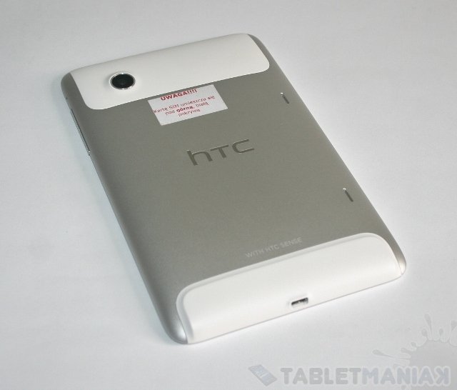 HTC Flyer od strony wizualnej prezentuje się bardzo interesująco. Obudowa tabletu niemalże w całości wykonana została z aluminium, za wyjątkiem górnej pokrywy urządzenia, pod którą zamontowany został czytnik kart pamięci microSD oraz wbudowany modem 3G. Podobny kawałek plastiku znajduje się po przeciwległej stronie naszego urządzenia i przyznam szczerze, że nie wygląda to zbyt zachęcająco. Aluminiowa pokrywa tabletu jest natomiast bardzo estetyczna, a w centralnej jej części wygrawerowane zostało logo Firmy HTC oraz napis „with HTC Sense”. Dodatkowym atutem wizualnym urządzenia są boczne przyciski głośności oraz klawisz On/Off, które również wykonane zostały z aluminium.
