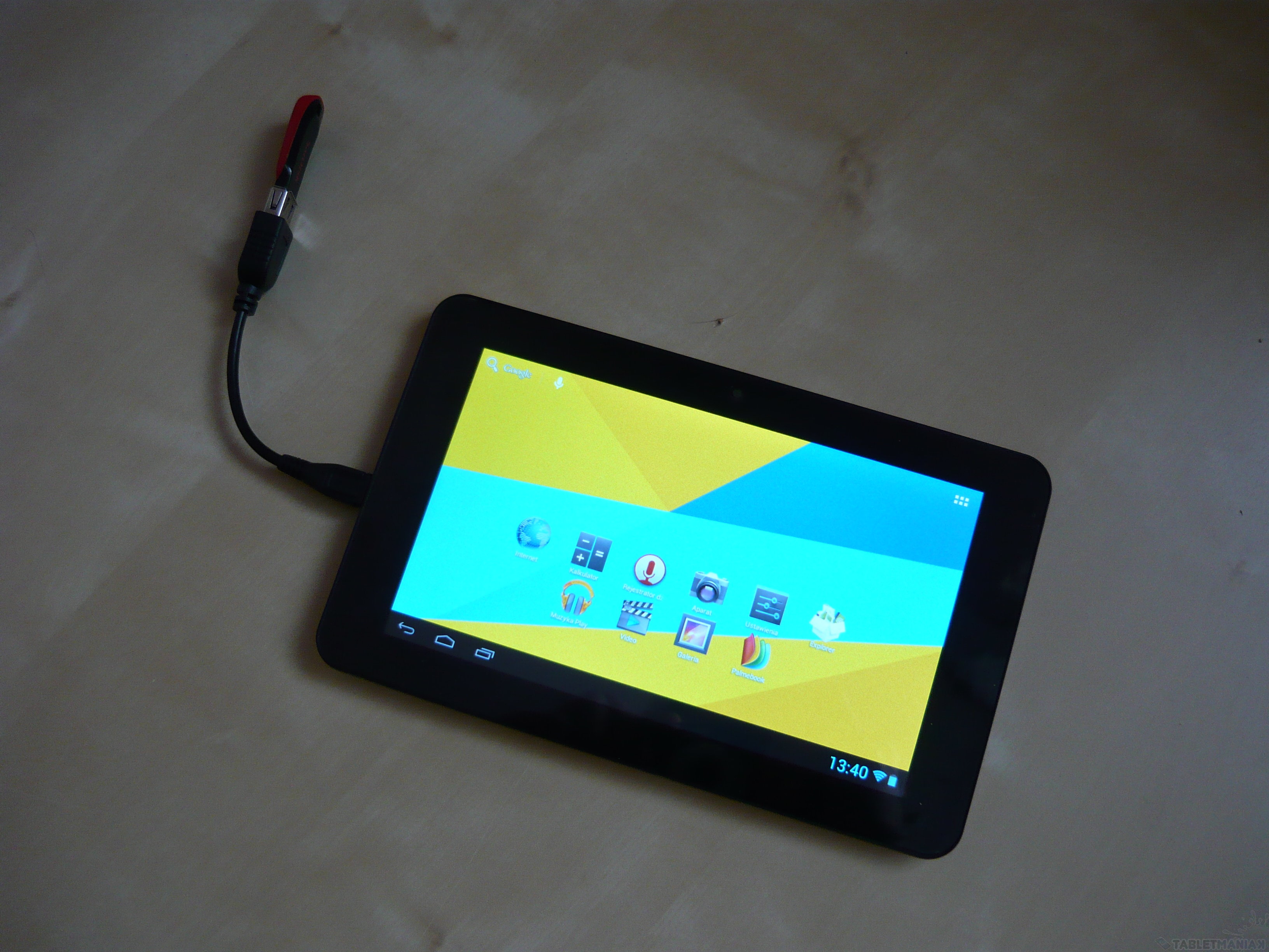 Standardowo postanowiłem sprawdzić, czy testowany tablet jest w stanie poradzić sobie nie tylko z pamięciami typu pendrive, ale również zewnętrznym dyskiem podłączonym za pośrednictwem przejściówki. Ku mojemu wielkiemu rozczarowaniu, port z funkcją OTG dostarczył niezbędne zasilanie jednak dysk o pojemności 750 GB nie został poprawnie odczytany. Nie wiem natomiast jak zachowałby się tablet z dyskiem wyposażonym we własne zasilanie.