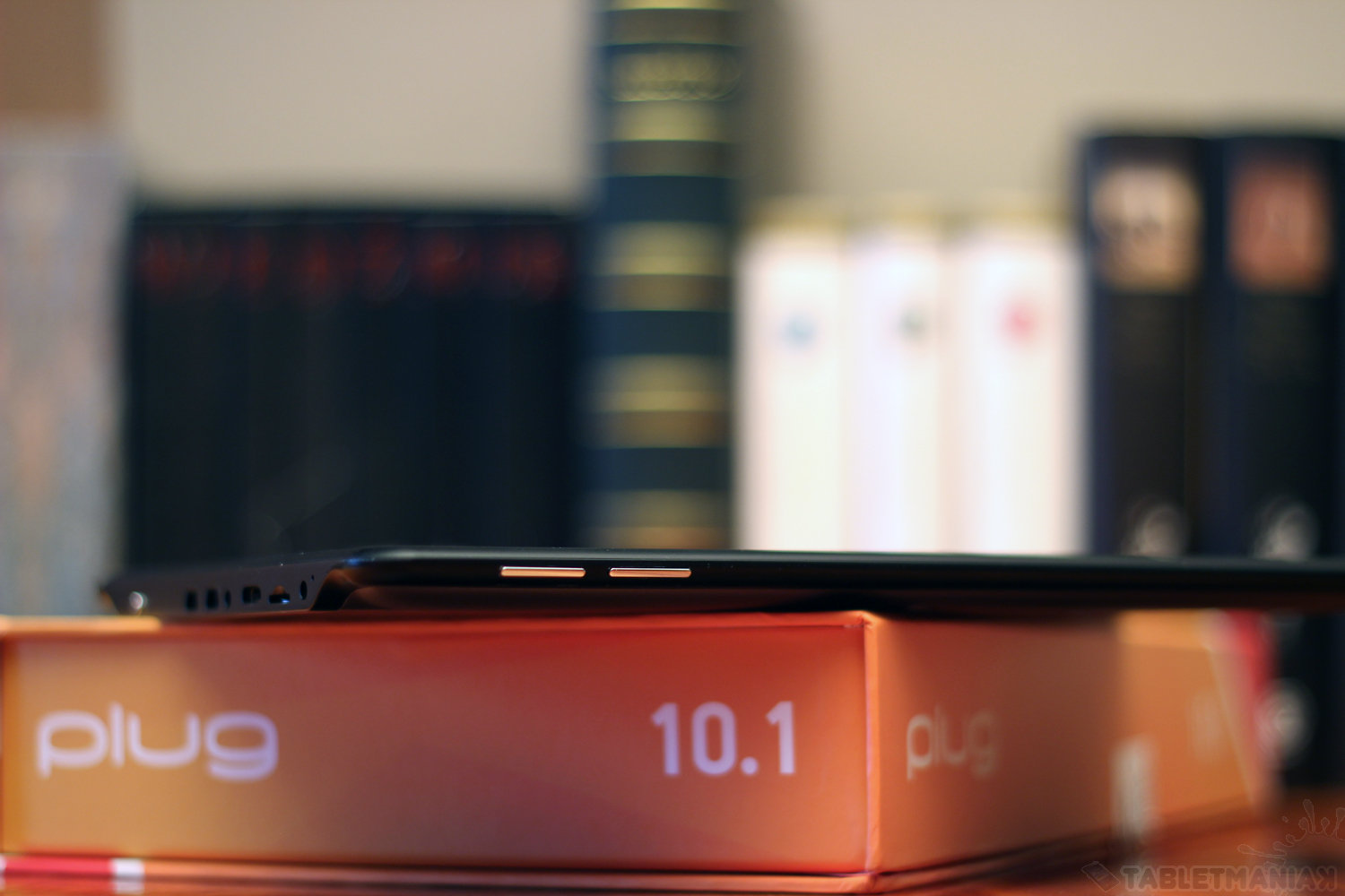 Plug 10.1 jest tabletem nietypowym, co widać już na pierwszy rzut oka. Projektanci chcieli podkreślić jego unikalny charakter, co wpłynęło na wzornictwo. Ścianki boczne są mocno wyczuwalne jako solidna, czarna rama okalająca konstrukcję. Ciężka, metalowa obudowa sprawia wrażenie solidnej. Zarówno na froncie, jak i spodzie przywitają nas kamerki. Interfejs użytkownika składa się z pięciu eleganckich, chromowanych przycisków. Głośniki umieszczono natomiast z przodu – tak, aby nie zostały przez przypadek zasłonięte przez niefortunnie ułożone palce.