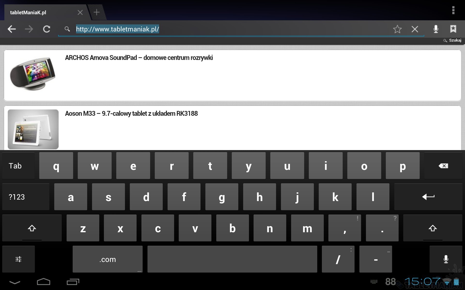 Klawiatura ekranowa składa się z czterech rzędów przycisków. Bez względu na układ, klawisze są równomiernie rozłożone na całej szerokości wyświetlacza. Z uwagi na panoramiczny format tabletu, w praktyce klawiatura jest wygodna tylko przy układzie horyzontalnym. Po obróceniu tabletu o 90 stopni, przyciski stają są zbyt zbite, co trochę obniża komfort pracy. W układzie pionowym urządzenie jest dobrym narzędziem do czytania PDFów i przeglądania stron, do pisania lepiej raczej korzystać z układu poziomego – zwłaszcza że sprzęt obsługuje multidotyk do 10 punktów.