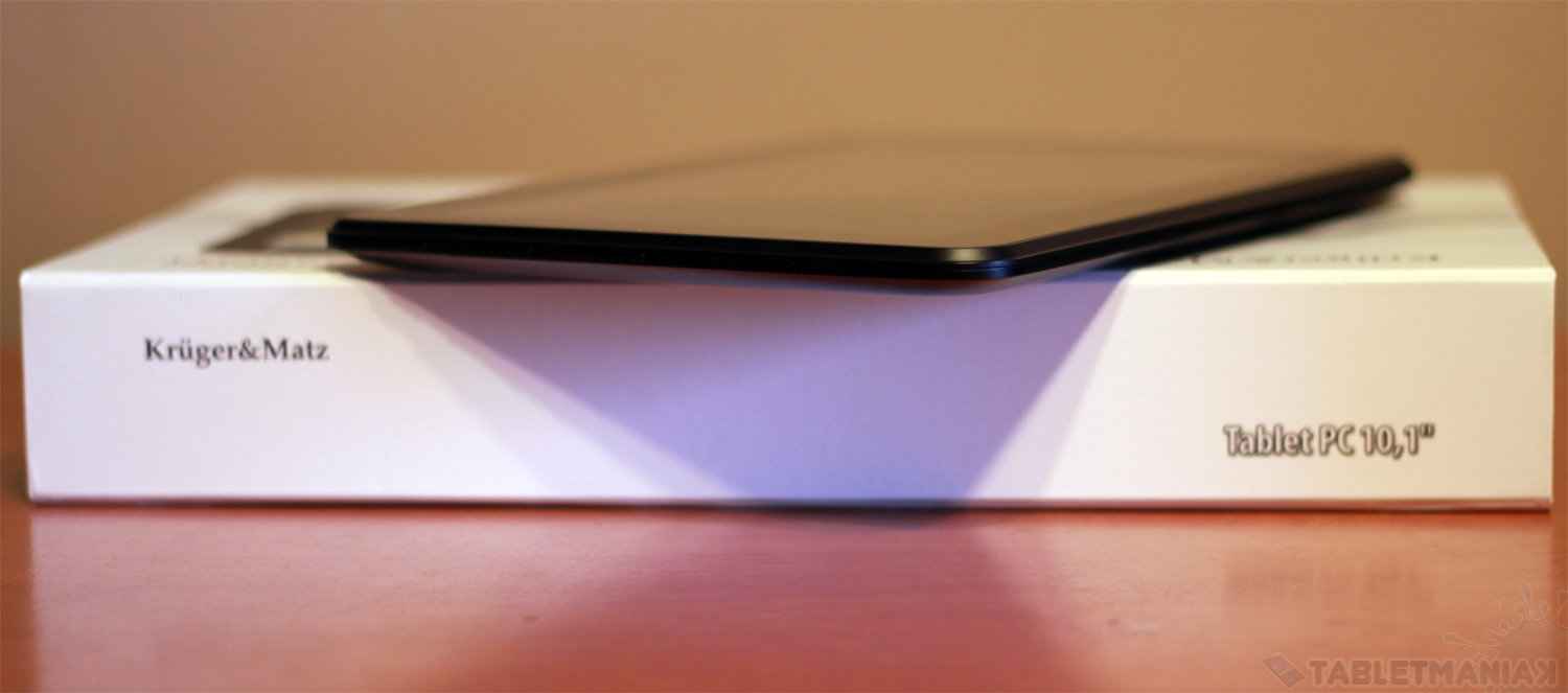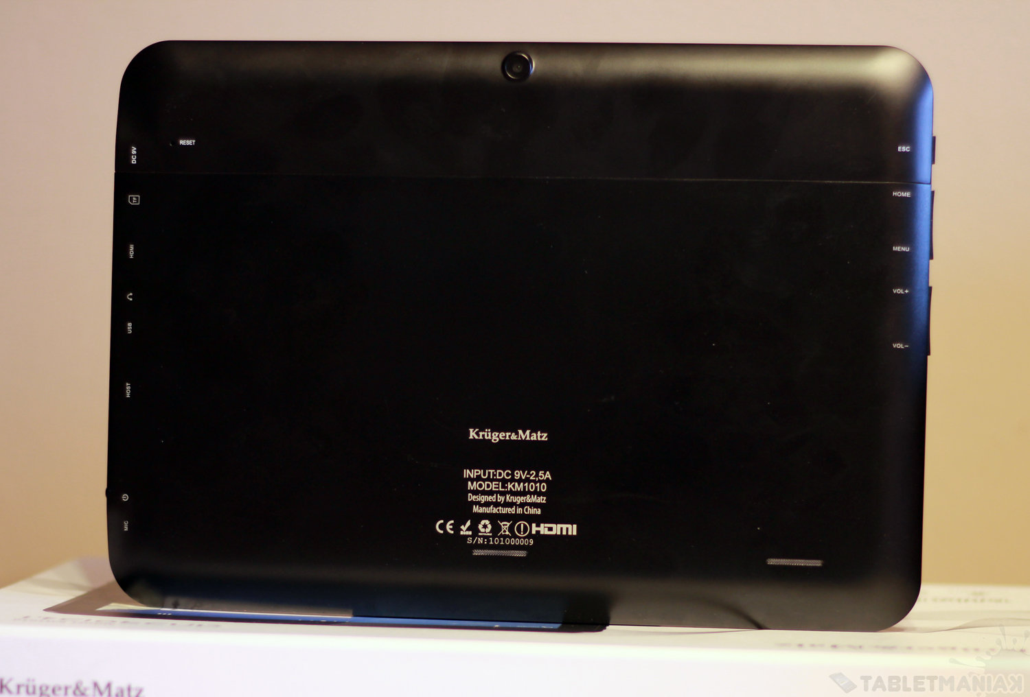 Gruba konstrukcja tabletu Kruger&Matz KM1010 jest masywna oraz sprawia wrażenie trwałej. Obudowa została wykonana z metalu, co daje się odczuć w wadze urządzenia. Frontowy panel niemal w całości został przykryty taflą ochronną, całość jest zaś utrzymana w ciemnej, matowej kolorystyce. Na pokładzie znajdziemy rozbudowane zaplecze komunikacyjne – w tym wspomniany już port USB, a także HDMI oraz moduł Bluetooth. Nie zabraknie też slotu kart microSD.