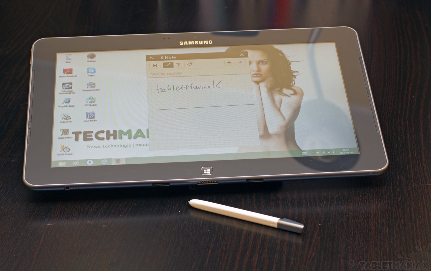 Ogromna przewage daje mu natomiast rysik z cienka koncowka, ktory ulatwia obsluge okienkowego systemu. Podobnie jaka w Galaxy Note 2, punkt w ktory celuje rysik objawia sie na ekranie kropeczka juz z odleglosci okolo 2 cm, co czyni go jeszcze wygodniejszym.
