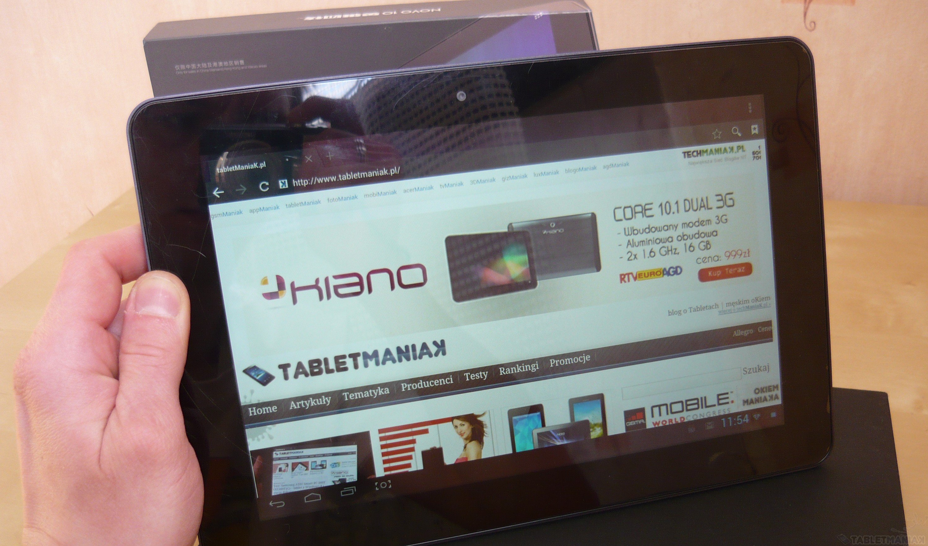 Tablet o wadze 672 gramów oraz wymiarach 262 x 178 x 9.8 mm z pewnością do lekkich nie należy, toteż dłuższe trzymanie w jednej dłoni jest odczuwalne. Nie oszukujmy się – najbardziej komfortową pozycją do pracy Hero II jest ta domyślna (pozioma), gdzie sprzęt trzymamy w obu dłoniach.