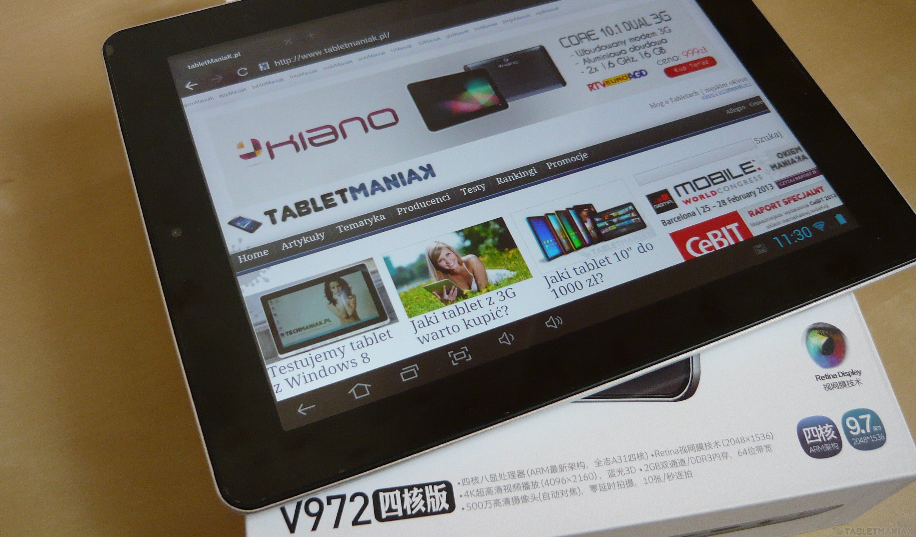 W tablecie Onda V972 producent zastosował matrycę wykonaną w technologii IPS, o wysokiej rozdzielczości 2048 x 1536 pikseli, dzięki czemu obraz jest bardzo wyraźny, kolory bardzo żywe, a co najważniejsze, realistyczne. Śmiało mogę powiedzieć, że 9.7-calowy wyświetlacz może bez większego problemu stanąć do walki z ekranami Super AMOLED i wyjść z tego pojedynku zwycięsko.