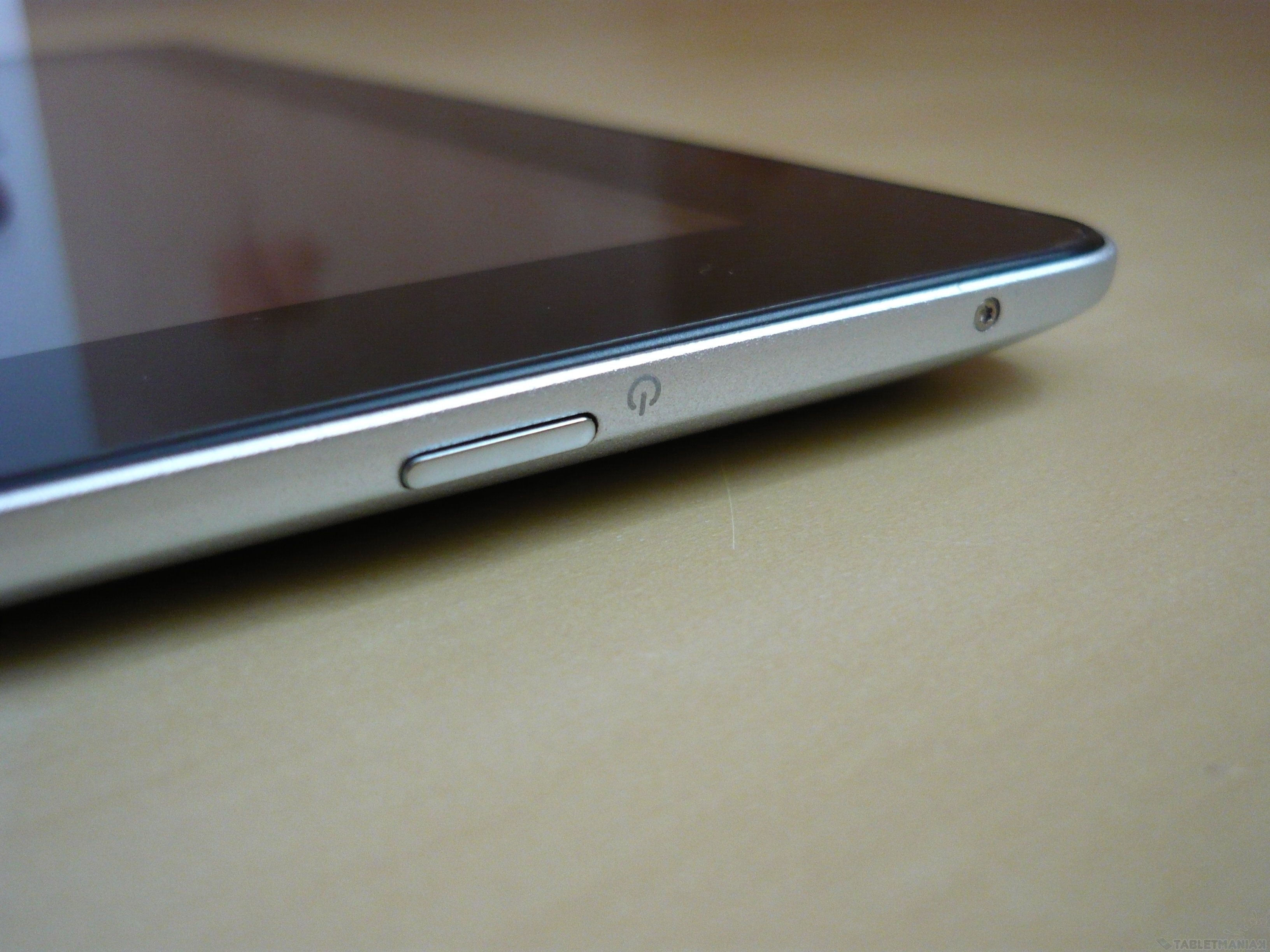 Trzymając tablet w pozycji domyślnej (pionowej) na górnym obrzeżu umiejscowione zostały zaledwie dwa przyciski (po przeciwległych stronach) – Power (służący również do usypiania i wybudzania) i Home. Na dole, po prawej stronie, znajdziemy natomiast pełen pakiet standardowych portów oraz złączy, zaś po lewej chromowaną maskownicę głośnika, który choć nie najwyższych lotów, zapewnia czysty oraz przyjemny dla ucha dźwięk.