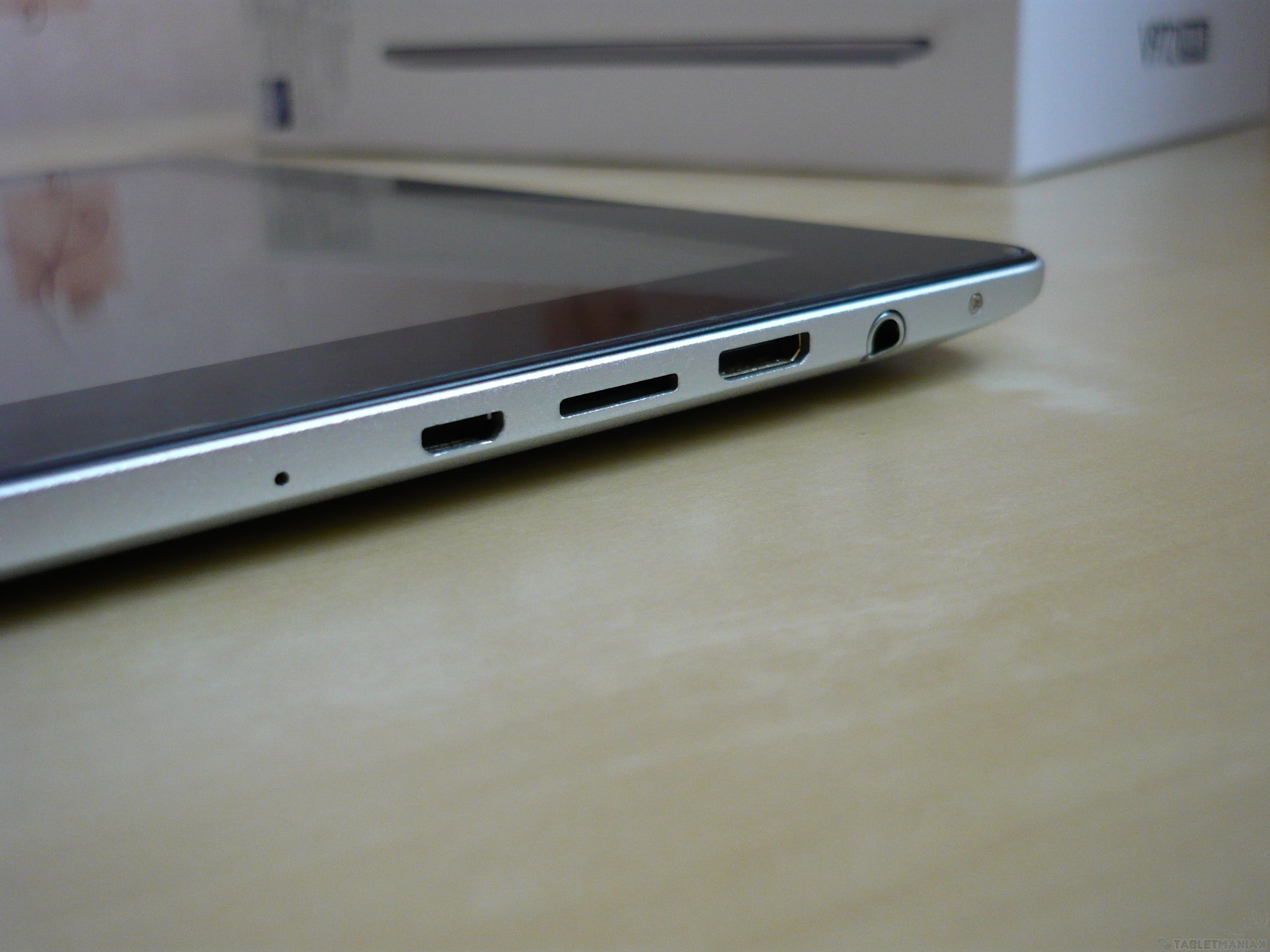 Onda V972 oferuje pakiet standardowych portów – nie zabrakło złącza zasilania, portu micro USB z funkcją On-The-Go, mini HDMI i slotu kart pamięci typu microSD, z obsługą nośników pamięci o wielkości do 32 GB, a także złącza słuchawkowego Minijack (3,5 mm), do którego możliwe jest podłączenie zarówno głośników, jak i zestawu słuchawkowego. Za pośrednictwem przejściówki dołączonej do zestawu, port micro USB pozwoli na podłączenie urządzeń peryferyjnych, wskazujących i pamięci masowych, w tym także zewnętrznego dysku HDD bez własnego źródła zasilania (testowane na Samsungu 750 GB).