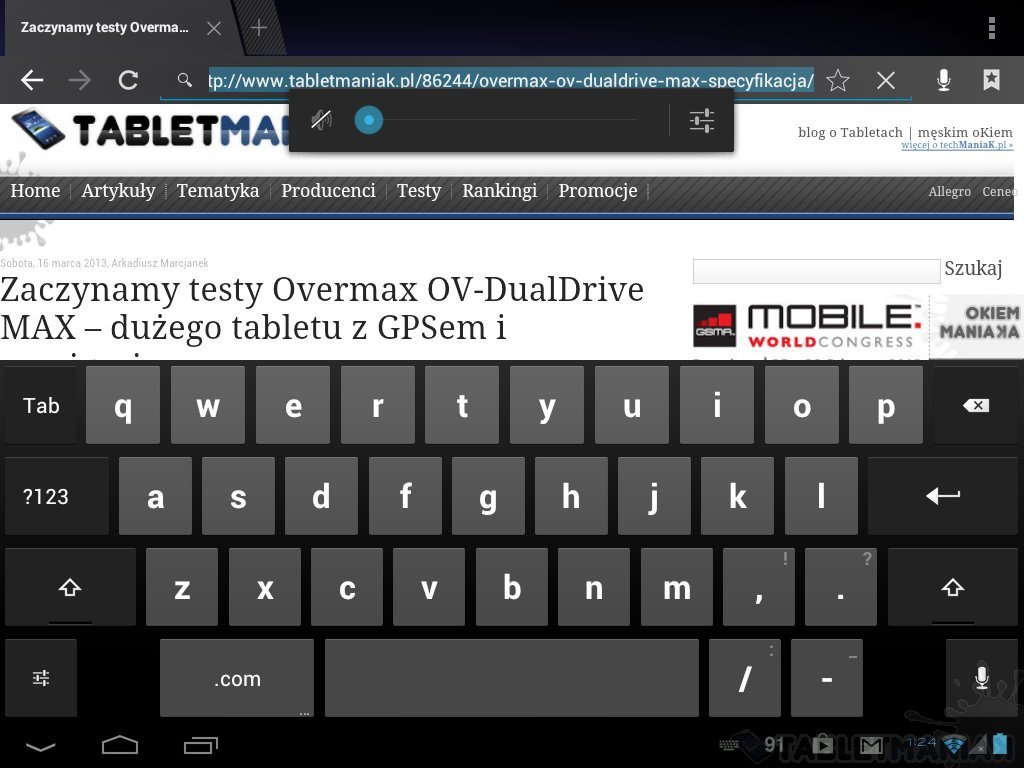 Overmax OV-DualDrive MAX radzi sobie z większością aplikacji codziennego użytku. Obsłuży PDFy (choć przy tych cięższych, bogatych w grafiki trzeba się uzbroić w trochę cierpliwości) oraz sprawdzi się jako narzędzie do przeglądania i edycji dokumentów. Pozwoli nam posłuchać muzyki, sprawdzić pocztę i przejrzeć najnowsze wydarzenia jeśli mamy podłączenie do internetu. Jeśli chodzi o rozgrywkę, sprawdziłem takie tytuły, jak Dead Trigger, Mass Effect: Infiltrator, a także Death Dome – z uwagi na zaawansowanie graficzne wymienionych pozycji, płynność nie była rewelacyjna, ale nie przekreślała potencjału urządzenia jako mobilnej konsoli. Ponadto na tablecie znajdziemy domyślnie wgraną aplikację nawigacyjną Be-On-Road. Użytkownik otrzymuje bezterminowy klucz w zestawie, dzięki któremu może kupić tablet z mapą z jednym krajem – np. Polską lub Europą (w tym z Rosją) lub mapą dla ciężarówek (tylko Europa z Rosją). Jak deklaruje producent, użytkownicy nawigacji mogą liczyć na minimum dwie aktualizacje rocznie.