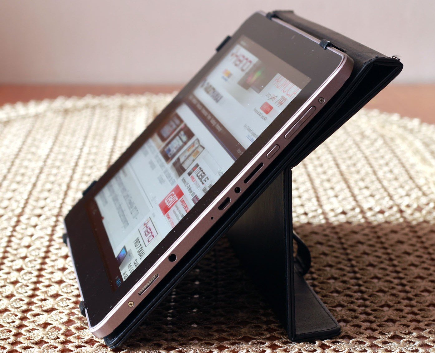 Przyjemny dla oka wygląd oraz wysoka jakość montażu to nie wszystko. Potencjalny użytkownik może również liczyć na dobrą ergonomię pracy. Do dyspozycji mamy charakterystyczny układ trzech przycisków (włącznik i kontrola głośności) skupionych na krótszej belce bocznej. Są w bezpośrednim zasięgu palca. Obudowa nie ślizga się w rękach, warto też dodać, że producent dodatkowo oferuje dedykowane etui ze skóry ekologicznej, uzbrojone w magnetyczne zamknięcie: okładka przykrywa tylny panel w całości (przykrywając kamerkę), a boki są spięte niedużymi klamrami. Użytkownik przez cały czas ma swobodny dostęp do portów i przycisków.