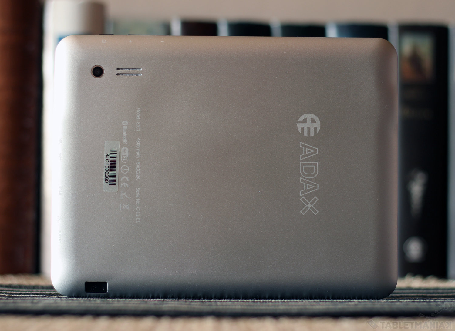 Adax 8JC1 ma proste, choć miłe dla oka wzornictwo. Obudowę tworzą dwie części. Tylny panel został odpowiednio wyprofilowany przez co ten sam element obudowy tworzy również belki boczne i łączy się bezpośrednio z frontem. Dominuje kolor srebrny, jeśli nie liczyć czarnej ramy okalającej ekran. Na pierwszy rzut oka sprzęt jest dobrze spasowany i odpowiednio sztywny, choć tafla ochronna lekko się ugina przez co pod wyświetlaczem zauważymy charakterystyczny efekt „jacuzzi”. Sądząc zaś po wadze, spodnia obudowy została wykrojona z aluminium.