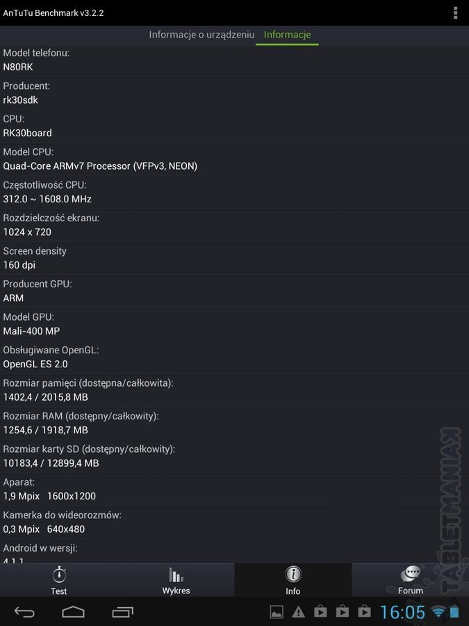 „Tablet zbudowany jest w oparciu o dwurdzeniowy procesor Rockchip 3188 zaprojektowany w architekturze ARMv7. Jednostka obliczeniowa charakteryzuje się nominalnym taktowaniem 1,6 GHz. Na każdy rdzeń procesora przypadają dwa rdzenie układu graficznego Mali-400 MP4.