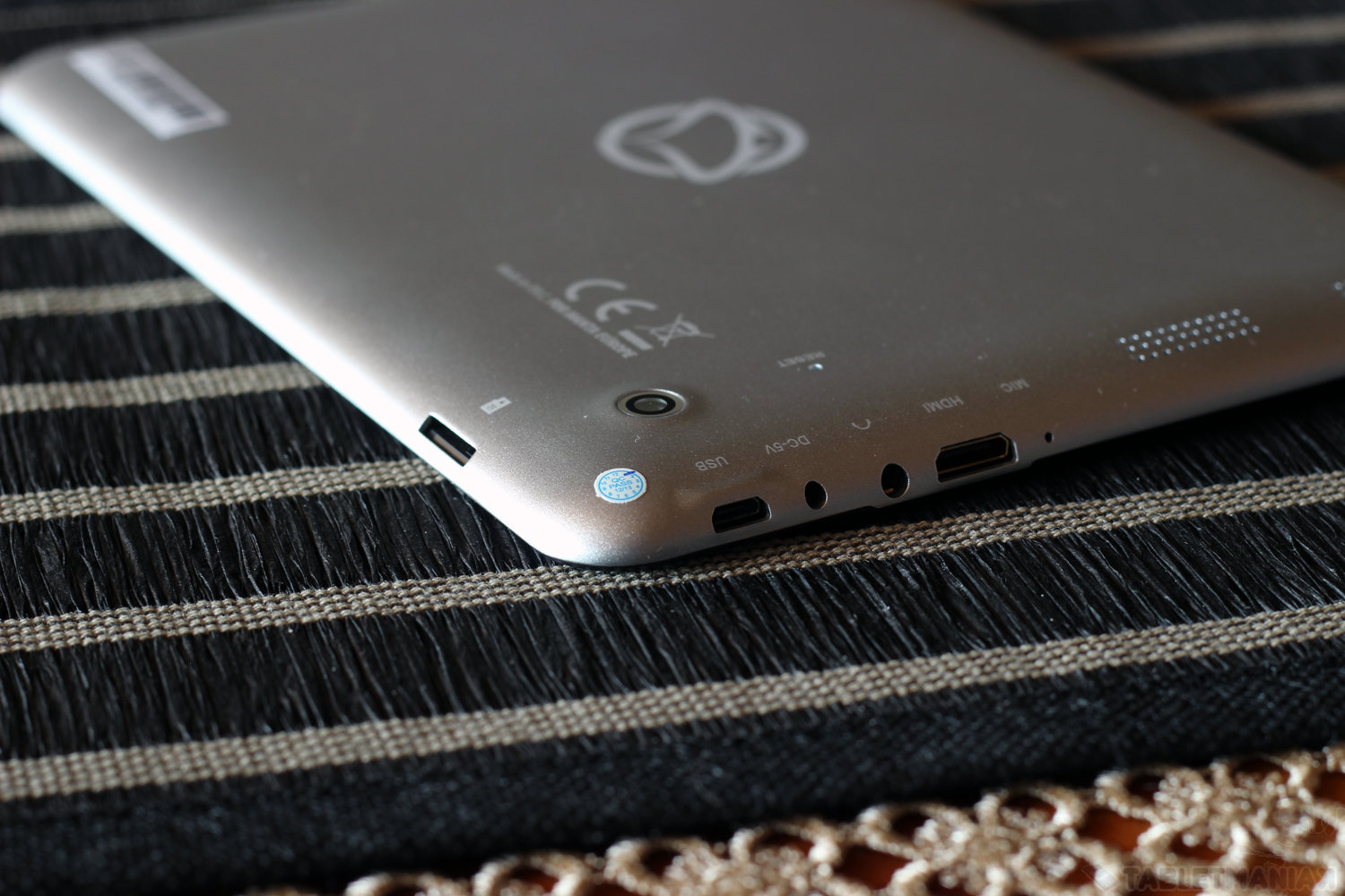 Na pokładzie urządzenia znajdziemy porty audio jack 3,5 mm, slot kart microSD (obsługuje nośniki o pojemności do 32 GB), złącze microUSB oraz gniazdo miniHDMI. Port microUSB obsługuje standard OTG, a tym samym poprawnie wykrywa przenośne pamięci oraz urządzenia wskazujące. Nie poradził sobie jednak z koncentratorami USB oraz dyskami zewnętrznymi. Możliwe że rozwiązaniem okaże się tu zmiana przejściówki bądź odpowiednia aplikacja.