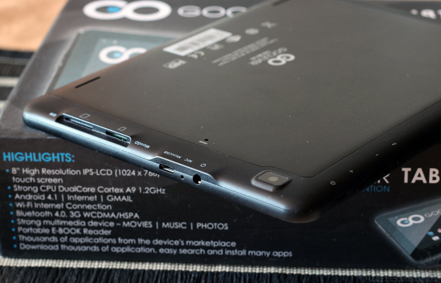 GOCLEVER TAB M813G to solidnie wyglądająca konstrukcja z 8-calowym ekranem. Obudowa jest smukła i niemal w całości utrzymana w czarnej kolorystyce. Wzornictwo jest ciekawe – elementy ważniejsze z punktu widzenia użytkownika wyraźnie się odcinają wyglądem i materiałem. Tylny panel został wykrojony częściowo z aluminium, co zwiększa nie tylko wagę urządzenia, ale też jego trwałość. Warto zauważyć, że na pokładzie znajdziemy głośniki stereofoniczne.