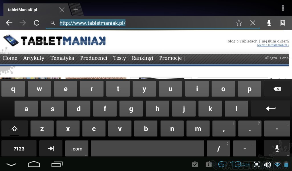 Przeglądarka internetowa z reguły pracuje bez zarzutu. Wczytywanie poszczególnych stron odbywa się z zadowalającą płynnością, a jedyne przestoje wynikają z jakości połączenia internetowego. W fabrycznej konfiguracji tablet nie obsługuje technologii Adobe Flash oraz strumieniowania audio i video (sprawdziłem na stronach oferujących streaming wideo – np. drhtv.com.pl oraz na bazie gry Settlers Online).