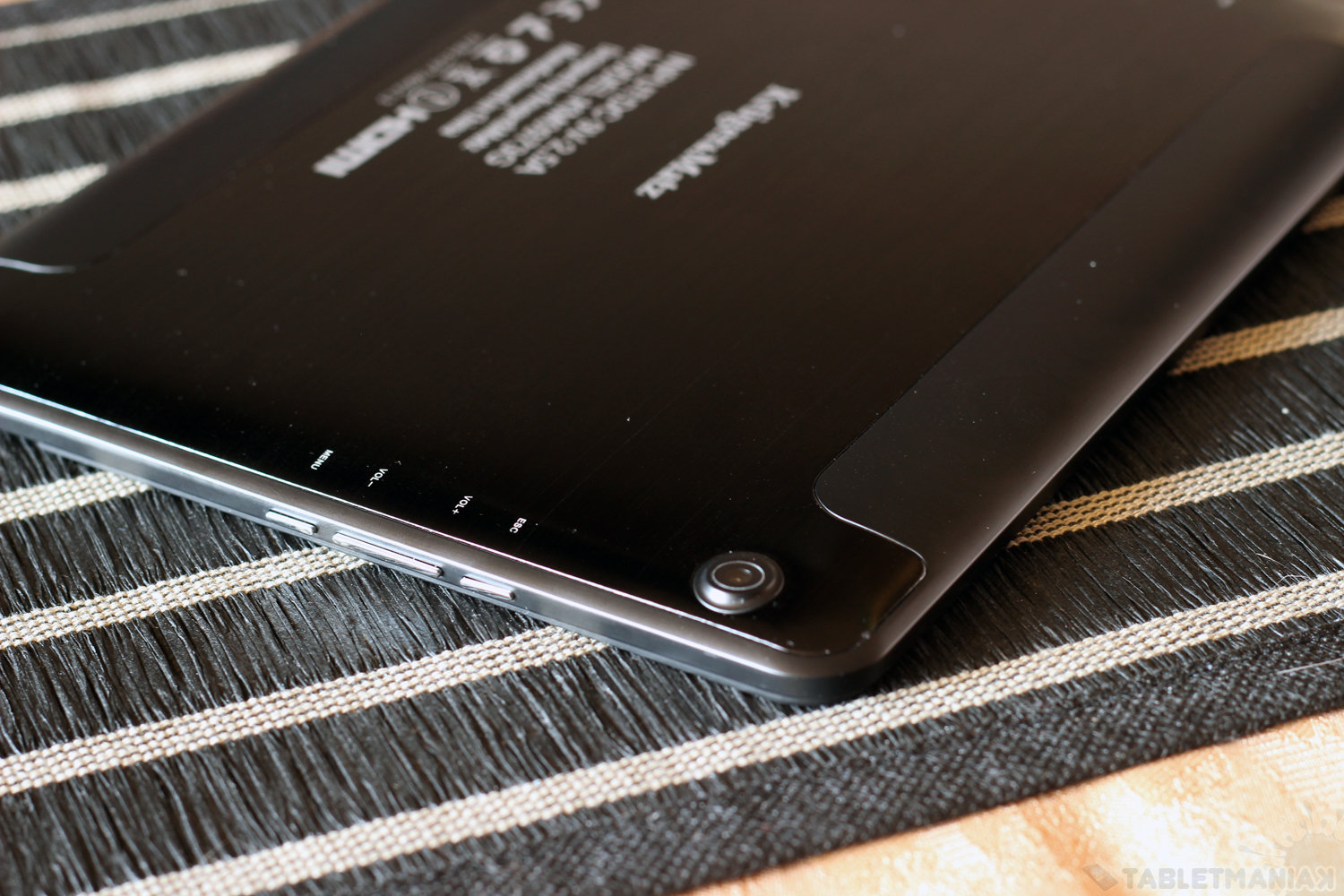 Tego typu urządzenia nazywam tabletami kanapowymi – są duże, grube, ciężkie, ale za to oferują przejrzysty ekran i komfort dużego pulpitu roboczego. Sprzęt charakteryzuje się przy tym ciekawym wzornictwem. Obudowa wyraźnie jest podzielona na poszczególne części, różniące się nie tylko kolorem, ale też materiałem. Na tylnym panelu znajdziemy zaś charakterystyczny deseń szczotkowanego aluminium. Wykończenia są półmatowe bądź matowe, a kluczowe miejsca łagodnie wyprofilowane.