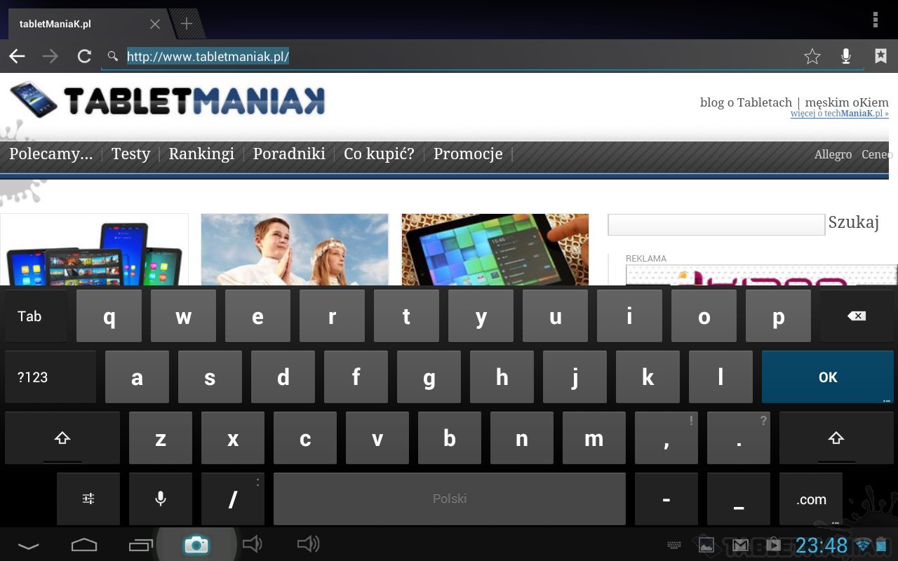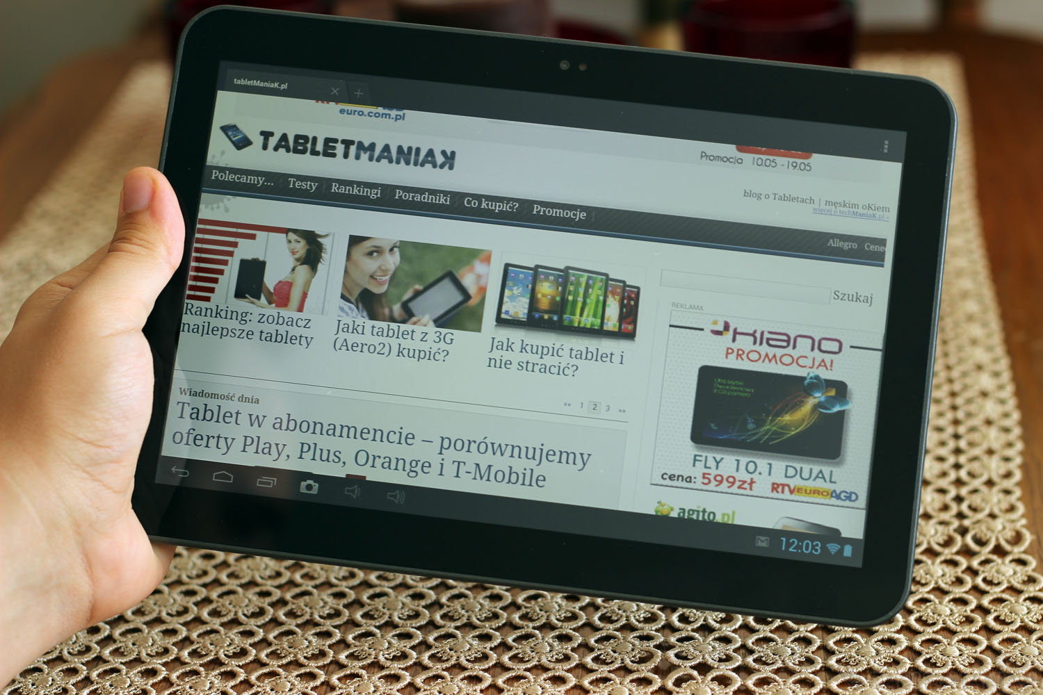 Wczytywanie stron w czasie przeglądania sieci odbywa się z zadowalającą płynnością, a do tego tablet już w fabrycznej konfiguracji obsługuje technologię Adobe Flash oraz strumieniowanie audio i video (opcję sprawdziłem na stronach oferujących streaming wideo – np. drhtv.com.pl). Mogą się jednak pojawić problemy z uruchomieniem gier bazujących na tym sofcie (testowane na bazie gry Settlers Online).
