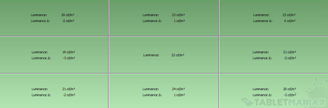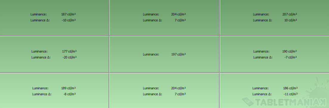Maksymalna jasność matrycy to 197 cd/m2 (przy 100-procentowej sile podświetlenia), co jest słabym wynikiem. To oznacza, że komfortowa praca będzie możliwa dopiero przy pełnej sile podświetlenia. Nierównomierność podświetlenia sięga 15%. Jasność możemy zmieniać płynnie w szerokim zakresie, a najmniejsza wartość to 22 cd/m2 (co oznacza, że przy najniższym ustawieniu jasności komfort pracy będzie znacznie obniżony). Matryca nie migoce w żadnym punkcie, nie zauważyłem również przebarwień i “martwych pikseli”.