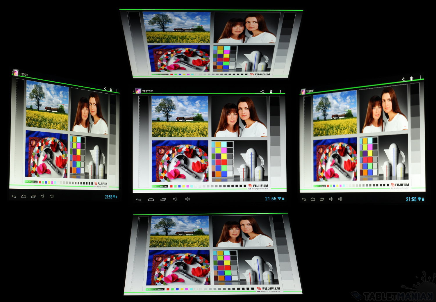 Tablet został wyposażony w 9,7-calowy ekran IPS, o wysokiej rozdzielczości 2048 x 1536 pikseli. Technologia In-plane Switching oferuje szerokie kąty widzenia. Przejrzystość wyświetlanego materiału jest wysoka – gołym okiem ciężko dostrzec piksele, co sprawia, że obraz jest bardzo naturalny. Kolory charakteryzują się zadowalającą temperaturą. Pozostałe parametry obrazu w ogólnym rozrachunku wypadają na dobrym (dla tego segmentu urządzeń) poziomie.