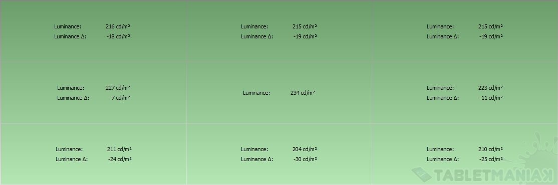 Maksymalna jasność matrycy utrzymuje się w tabletowej średniej. Otrzymujemy tu bowiem 234 cd/m2 w najjaśniejszym miejscu ekranu – na środku – a nierównomierność podświetlenia nie przekracza 10%. Możliwość płynnej zmiany intensywności podświetlenia i minimalna wartość równa 1 cd/m2 (doskonała do czytania w nocy) pozwalają na komfortowe używanie tabletu do najrozmaitszych zadań. Szkoda, że zabrakło czujnika podświetlenia, ale z drugiej strony mało która “budżetówka” takowy posiada. Plug oferuje za to funkcję programową – Intelligent Backlight – która radzi sobie nadspodziewanie dobrze.