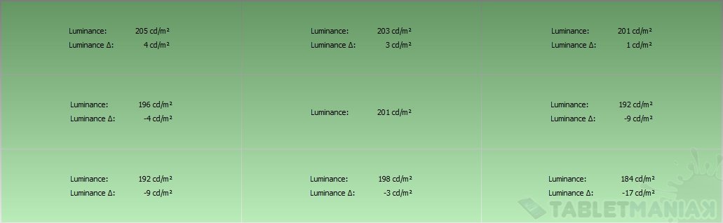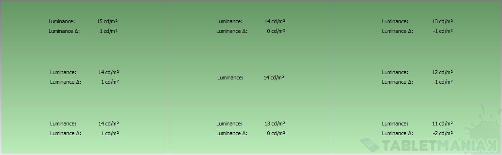 Tablet dobrze oddaje barwy, w sposób naturalny. Balans bieli pozostaje neutralny według wskazań kalibratora. Urządzenie nie dysponuje sprzętowym czujnikiem oświetlenia zastanego, posiada natomiast funkcję programową, Intelligent backlight, której zadaniem jest możliwie najlepsze dostosowanie jasności do panujących warunków. Jest też tryb dbający o właściwe ustawienia kolorów – również software’owy.